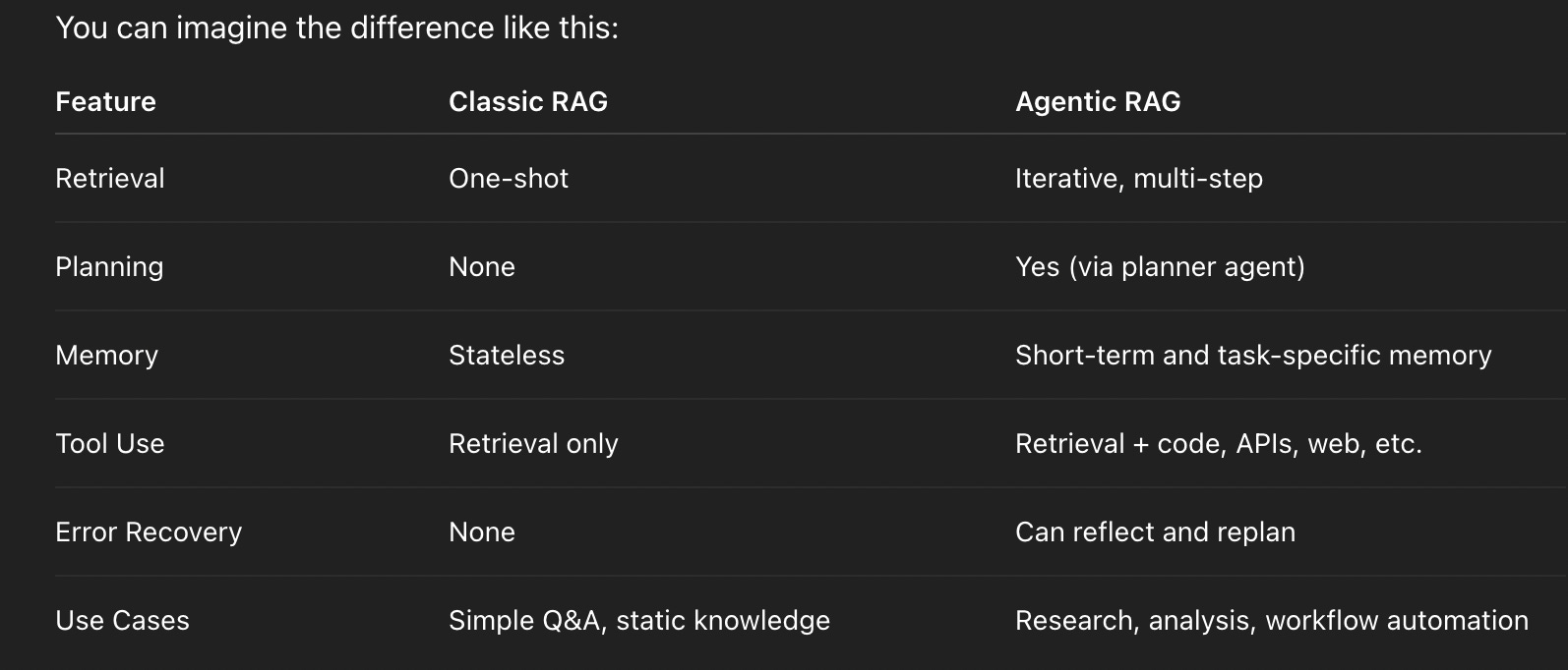 A classic RAG system might just retrieve a few blog posts and summarize them. An Agentic RAG system would: