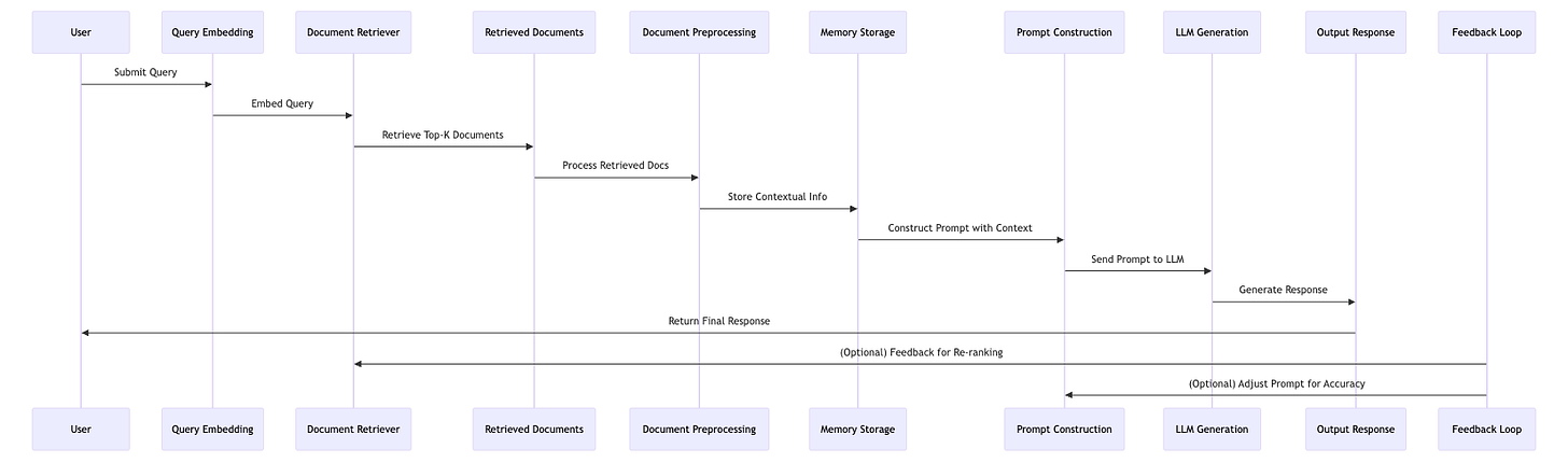LLM generator: Uses the user’s query along with the retrieved documents to generate a detailed, coherent response by synthesizing information from both sources.